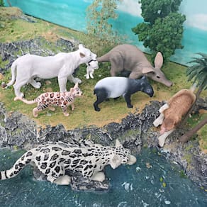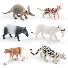 Conjunto de 6 estatuetas de animais selvagens, bonecos de PVC, incluindo porco-da-terra, leopardo de Bengala, leão branco, macaco-probóscide, leopardo da neve e muito mais, brinquedos realistas de animais para crianças, decorações educacionais Descrição: Material: PVC Tamanho: 1,8-16 cm Peso: 400 g Características: diversas estatuetas de animais selvagens: este conjunto inclui seis estatuetas altamente detalhadas e realistas: aardvark, leopardo de Bengala, leão branco, macaco-nariguda, leopardo da neve e muito mais, todos feitos de material de PVC durável. Brincadeira e aprendizagem educativas: ideais para crianças de 3 anos ou mais, essas figuras de animais incentivam o aprendizado sobre a vida selvagem e promovem brincadeiras criativas, ajudando as crianças a desenvolver habilidades cognitivas e sociais. Perfeitas para decorações de quartos: essas estatuetas de animais realistas também servem como maravilhosas decorações de quarto, peças de diorama ou decorações de festas, adicionando um toque da natureza a qualquer espaço ou evento. Construção durável e segura: feitas de PVC não tóxico e de alta qualidade, essas bonecas são construídas para suportar horas de brincadeira e, ao mesmo tempo, serem seguras para as crianças interagirem. Compacto e colecionável: cada boneco varia de 1,8 a 16 cm, o que os torna perfeitos para exibir, armazenar e usar em dioramas ou simplesmente para colecionar. O que vem na caixa: 6 x Conjunto de estatuetas de animais selvagens