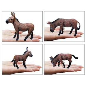 Conjunto de estatuetas de burro realistas de 4 peças, modelos de brinquedos de burro em miniatura de PVC - família de burros marrons, decorações estáticas de animais de fazenda, brinquedos educacionais de animais de fazenda para crianças de 3 anos Descrição: Material: PVC Tamanho: 2,5 a 12,5 cm Peso: 213,8 g Características: Design detalhado: este conjunto apresenta 4 estatuetas de burro realistas, incluindo uma mãe burra e seus filhotes, feitas com detalhes e texturas realistas para imitar a aparência de burros reais. Seguros e duráveis: feitos de material de PVC não tóxico de alta qualidade, esses modelos de burro são seguros para crianças e projetados para resistir a brincadeiras prolongadas. Educativas e divertidas: perfeitas para ensinar crianças sobre animais de fazenda, essas estatuetas de burro são uma ótima maneira de promover brincadeiras criativas e apresentar às crianças o reconhecimento de animais. Uso versátil: use essas estatuetas de burro como decoração para festas temáticas de fazendas, exibições educacionais ou como parte de uma coleção maior de estatuetas de animais. Ideal para crianças a partir de 3 anos: essas estatuetas são adequadas para crianças de 3 anos ou mais, o que as torna perfeitas para aprender, brincar ou exibir interativamente nas prateleiras. O que vem na caixa: 4 x Conjunto de estatuetas de burro realistas