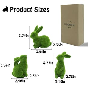 AOMOONOA Os coelhos verdes flocados de resina são um complemento perfeito para sua decoração interna de Páscoa e primavera, que também combinam perfeitamente com seus ovos de Páscoa, contas de madeira, vasos e outras peças centrais de mesa. Com design de aparência única e efeito de acabamento rústico vívido, estas pequenas estatuetas de coelho para decoração de mesa são uma adição de esplendor de bom gosto para a decoração da sua casa e tornam sua vida agradável e agradável. Banhe-se sob o sol quente e tenha um tempo de lazer agradável! - Qualidade favorável: as estatuetas de coelho da Páscoa para decoração de casa são feitas de material de resina premium, cuidadosamente trabalhadas em flocagem de musgo verde artificial, adequadas para uso repetido a longo prazo, não é fácil de deformar ou desbotar - Estilo realista: as estatuetas de coelho flocado são projetadas em três coelhinhos fofos em diferentes posturas que se agacham e olham em direções diferentes. O efeito de superfície flocagem verde artificial adiciona um toque de sensação exuberante e fresca à sua decoração de primavera - Tamanho perfeito: as estatuetas de coelho pequenas vêm com 3 tamanhos, 9 cm C C x 6 cm L x 9 cm A, 7 cm C C x 6 cm L x 9 cm A e 8 cm C C x 10 cm A, encaixando-se perfeitamente na peça central da sua bandeja de mesa - Decoração exclusiva: o conjunto de estátuas de coelho da Páscoa flocado é uma adição adorável à decoração do seu festival, decoração de casa de fazenda de primavera, festas de inauguração... trazendo uma sensação de rústica e vigor para sua casa - Presente bem escolhido: os coelhos decorativos para a Páscoa também podem ser levados em consideração como presente para suas famílias, amigos e vizinhos... para adicionar calor à decoração de férias e desfrutar de uma primavera quente...