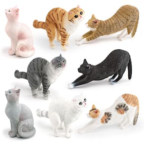 Conjunto de estatuetas realistas para gatos — Gatos de brinquedo de PVC em miniatura, incluindo gatos que se alongam, sentam e dormem — Perfeito para exibir, decorar e brincar para crianças Descrição: Material: PVC Tamanho: 3-12 cm Peso: 900 g Características: Figuras realistas de gatos: este conjunto apresenta 8 estatuetas de gatos em miniatura lindamente criadas em várias poses, incluindo alongamento, assento e sono, feitas de PVC durável e realista. Perfeitas para exibição: essas charmosas figuras de gatos são adições deliciosas à decoração de sua casa, escritório ou sala de aula, criando uma atmosfera aconchegante e extravagante onde quer que sejam colocadas. Educativas e divertidas: projetadas para brinquedos infantis, essas estatuetas de gatos incentivam brincadeiras criativas e ensinam as crianças sobre os diferentes comportamentos dos gatos, promovendo a criatividade e o aprendizado. Duráveis e seguros: feitos de PVC não tóxico de alta qualidade, esses bonecos para gatos são seguros para crianças de 3 anos ou mais, perfeitos tanto para brincar quanto para serem exibidos a longo prazo. Ótimas para colecionadores: ideais para amantes e colecionadores de gatos, essas estatuetas adicionarão variedade e charme a qualquer coleção ou decoração com tema de gatos. O que vem na caixa: 8 x Conjunto de estatuetas de gato realistas