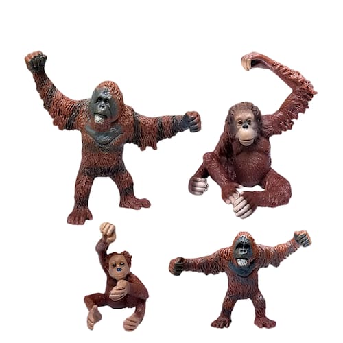 Conjunto de 4 peças de estatuetas realistas de orangotango, figuras de animais selvagens em PVC, poses realistas em pé e sentadas, modelos de gorilas em miniatura para crianças, decorações de zoológico de animais Descrição: Material: PVC Tamanho: 2-12 cm Peso: 161,6 g Características: Figuras realistas de orangotango: este conjunto apresenta quatro estatuetas de orangotango altamente detalhadas em várias poses realistas, incluindo em pé, sentadas e escaladas, mostrando o detalhes incríveis de suas peles e expressões faciais. Construção durável em PVC: Feitas de PVC não tóxico de alta qualidade, essas estatuetas são seguras para crianças, feitas para brincadeiras duradouras e fáceis de manter para brincadeiras e exibições. Ótimas para brincadeiras educativas: ideais para crianças, essas estatuetas de orangotango as ajudam a aprender sobre o mundo natural e a vida selvagem, ao mesmo tempo em que promovem brincadeiras e histórias criativas. Perfeitas para decorações: essas estatuetas também podem ser usadas como peças decorativas em quartos infantis, festas temáticas na selva ou exibições em zoológicos, trazendo um toque realista da natureza a qualquer espaço. Tamanho para crianças pequenas: medindo entre 2 e 12 cm, essas minifiguras de orangotango têm o tamanho perfeito para mãos pequenas, incentivando o desenvolvimento de habilidades motoras finas e a exploração criativa. O que vem na caixa: 4 x Conjunto de estatuetas realistas de orangotango