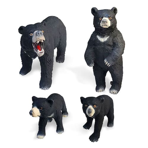 Conjunto de 4 peças de estatuetas de urso preto asiático em miniatura — Modelos de urso de PVC — Figuras de urso em pé e andando, brinquedos de animais realistas para crianças, brinquedos e decorações educacionais Descrição: Material: PVC Tamanho: 3-11 cm Peso: 256,2 g Características: Estatuetas de urso realistas: Este conjunto de 4 peças inclui estatuetas de urso preto asiático em miniatura em várias poses, incluindo bebês ursos em pé e andando, desenhados com detalhes intrincados para brincadeiras realistas. Material seguro e durável: feitas de PVC não tóxico de alta qualidade, essas estatuetas de urso são duráveis e seguras para crianças de 3 anos ou mais, perfeitas para brincadeiras educacionais duradouras e diversão criativa. Conjunto de brinquedos educativos: essas estatuetas ajudam as crianças a aprender sobre a espécie de urso preto asiático e seus comportamentos, estimulando a curiosidade e o conhecimento sobre a vida selvagem e os habitats dos animais. Ideal para decorações: seja para uma sala, sala de aula ou festa com tema de vida selvagem, essas adoráveis estatuetas de urso são uma excelente adição a qualquer espaço, aprimorando o ambiente com seu artesanato detalhado. Perfeitos para colecionadores e brincadeiras: sejam utilizados para brincar ou como parte de uma coleção de estatuetas de animais, esses modelos de urso preto em miniatura são perfeitos para jovens entusiastas e colecionadores de animais. O que vem na caixa: 4 x conjunto de estatuetas de urso preto asiático em miniatura