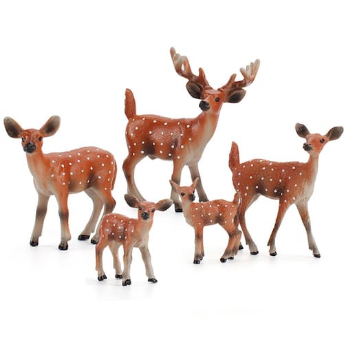 Conjunto de 6 peças realistas de estatuetas de veado de cauda branca, bonecos de animais selvagens em PVC, brinquedos educativos para crianças, modelos de vida selvagem florestal, decoração de Natal, coleção de cervos e veados Descrição: Material: PVC Tamanho: 4,5-9 cm Peso: 138,2 g Características: Família realista de veados de cauda branca: este conjunto inclui seis estatuetas de veado de cauda branca lindamente desenhadas, com um veado majestoso e filhotes divertidos com pontos distintos, perfeitos para entusiastas da natureza. Brinquedos educativos para animais: ideais para jovens alunos, essas figuras realistas de veados promovem o desenvolvimento cognitivo e a criatividade, além de ensinar as crianças sobre a vida selvagem da floresta. Decoração de Natal: com sua beleza natural e detalhes intrincados, essas estatuetas de veado servem como encantadoras decorações natalinas, adicionando um toque de elegância da floresta às suas exibições festivas. Duráveis e seguras: feitas de PVC não tóxico, essas estatuetas são seguras para crianças manusearem, oferecendo durabilidade duradoura para fins de brincadeira e exibição. Perfeito para brincar e exibir: cada boneco varia de 4,5 cm a 9 cm, o que os torna ideais para brincadeiras criativas, uso educacional ou como uma bela adição à decoração de sua casa ou sala de aula. O que vem na caixa: 6 x conjunto realista de estatuetas de veado de cauda branca