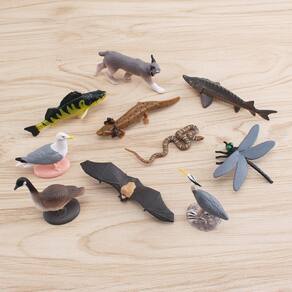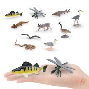 Conjunto de 10 peças de estatuetas de vida selvagem da América do Norte — Conjunto de brinquedos de PVC com salamandra, morcego, libélula, cobra, lince, peixe e muito mais, modelos de animais realistas para crianças, brinquedos educativos e decorações Descrição: Material: PVC Tamanho: 1-8 cm Peso: 57 g Características: variedade de animais norte-americanos — Este conjunto de 10 peças inclui uma seleção diversificada de vida selvagem norte-americana, incluindo salamandras, morcegos, libélulas e lince e muito mais, perfeito para educar as crianças sobre os animais locais. Material de PVC de alta qualidade — Feitas de PVC durável e não tóxico, essas estatuetas são projetadas para brincadeiras seguras e uso duradouro, ideais para crianças de 3 anos ou mais. Educational Wildlife Playset — Uma ferramenta fantástica para ajudar as crianças a aprender sobre a vida selvagem, essas estatuetas aprimoram o conhecimento das espécies animais e seus habitats naturais. Ótimas para decoração de casa ou sala de aula — Essas figuras de animais realistas são excelentes peças decorativas para salas de aula, casas ou espaços com temas naturais, adicionando um toque da natureza onde quer que sejam exibidas. Perfeitas para colecionadores — Com seus detalhes intrincados e designs realistas, essas estatuetas de vida selvagem são indispensáveis para colecionadores de animais ou entusiastas da vida selvagem norte-americana. O que vem na caixa: 10 x Conjunto de estatuetas de vida selvagem da América do Norte