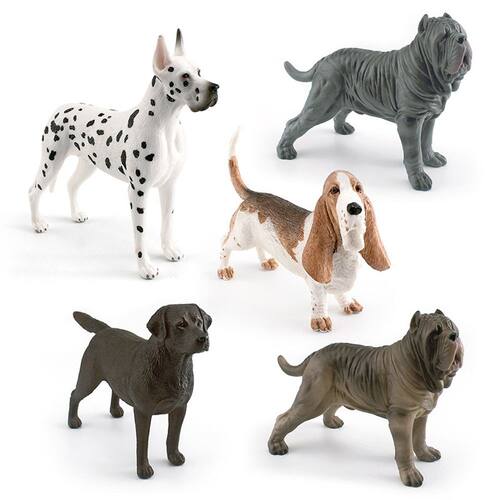 Conjunto de 5 peças de estatuetas realistas para cães — modelos de PVC de dálmata, basset hound, labrador, Dogue Alemão e Mastim Napolitano, figuras de animais em miniatura para crianças, jogos educativos e decorações Descrição: Material: plástico/plástico Tamanho: 3,5 a 16 cm Peso: 800 g Características: Modelos realistas de cães: Este conjunto inclui seis estatuetas de cães realistas, com um dálmata, Basset Hound, Labrador, Great Dane e Napolitan Mastiff, cada um projetado com detalhes e precisão incríveis. Conjunto de brinquedos educativos para crianças: perfeito para jovens alunos, este conjunto apresenta às crianças diferentes raças de cães, ajudando-as a aprender sobre vários animais e, ao mesmo tempo, aumentando sua curiosidade e conhecimento da natureza. Ótimas para brincadeiras criativas: essas estatuetas de cães incentivam brincadeiras criativas, permitindo que as crianças criem suas próprias histórias e aventuras relacionadas a cães enquanto desenvolvem habilidades sociais e criativas. Material de PVC durável: Feitos de PVC não tóxico de alta qualidade, esses bonecos são seguros para crianças de 3 anos ou mais, feitos para durar e proporcionar diversão duradoura durante as brincadeiras educacionais e a decoração. Decorações versáteis para cães: essas estatuetas para cães são excelentes adições às coleções de amantes de cães, salas de aula ou como peças decorativas para eventos temáticos, proporcionando um toque realista e divertido a qualquer ambiente. O que vem na caixa: 5 x Conjunto de estatuetas realistas para cães