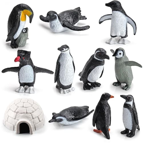 Brinquedo de estatuetas de pinguim ártico - ?Conjunto de estatuetas de pinguim?: (preste atenção ao tamanho do p2 antes de fazer o pedido) Vem com 11 peças. Pinguim Humboldt, pinguim rockhopper, pinguim gentoo, pinguim imperador, pintinho pinguim, pinguim adelie, pinguim galápagos, pinguim chinstrap, 2 pinguins nadadores e 1 iglu. As dimensões são mostradas na figura. - ?Seguro e de alta qualidade?: Estes topos de bolo de pinguim de plástico são feitos de materiais de qualidade premium altamente duráveis que são seguros para crianças e adultos. Use-os sem preocupações em cupcakes, bolos de aniversário e muito mais. Adicione um toque de charme ártico a qualquer celebração. - ?Detalhes emulacionais realistas?: Este conjunto de bonecos de pinguim foi feito à mão com aparência altamente realista detalhada, rosto fofo e olhos infantis. Suas texturas moldadas exclusivamente e detalhes ricamente pintados tornam os animais vívidos. - ?Figuras de ação de pinguim?: A decoração de bolo de pinguim prefere ser amada por adultos e crianças, estes enfeites de cupcake de bolo de pinguim serão uma ótima decoração para seus suprimentos de festa de inverno de pinguim. É ótimo como enfeite de cupcake ou lembrancinhas como presentes para prêmios de classe, festa de aniversário, Halloween, Natal, recheio de cesta de Páscoa, recheio de ovos de Páscoa, Dia dos Namorados, recheio de saco de doces e assim por diante. E é muito adorável como decoração central da sua mesa de escritório. - ?Figuras de animais polares do Ártico?: Ótimo presente para amantes de pinguins de todas as idades, perfeito para decorar um habitat animal antártico ou adicionar a um projeto temático de inverno, ideal para projetos de ciências escolares ou como lembrancinhas para uma festa de aniversário com tema animal com este conjunto de estatuetas de pinguim.