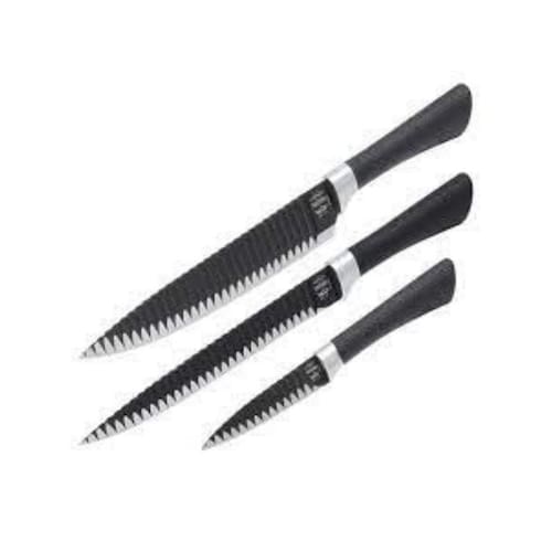 Ean: 7896980439878 Validade: indeterminada Tamanho aproximado: Faca de carne - 8'' 33,5cm Faca de cozinha - 8'' 33,5cm Faca de legumes - 3,5'' 20,5cm Tamanho aproximado da caixa: a:3xl:36,5xp:16cm Peso aproximado: 590g Tipo de produto: conjunto de faca de cozinha tubarão 3 peças Cor: preto e prata Composição: pp, tpr, abs e inox