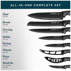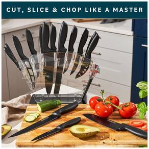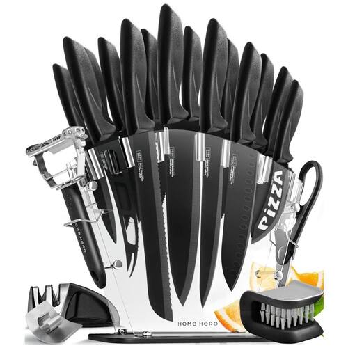 Conjunto completo tudo em um um conjunto especializado de facas de cozinha para todas as suas necessidades de corte. Inclui 13 facas profissionais, tesouras de cozinha, descascador de bônus, um amolador de faca de 2 estágios de qualidade premium e um suporte de faca moderno. Um verdadeiro organizador de talheres Qualidade profissional no seu melhor os melhores materiais para atualizar a sua cozinha este conjunto de facas de aço inoxidável oferece lâminas superiores revestidas com tinta antiaderente, além de cabos pp ergonômicos. Afiado, resistente e prático. Sem ferrugem, manchas ou corrosão aqui Uma decoração de cozinha multifuncional deve uma combinação perfeita de design e praticidade, com facas para todos os fins faca de trinchar, faca de serviço, faca de queijo, faca de pizza, faca de chef, faca de pão, faca de descascar, facas de bife. Corte de excelente precisão Conjunto de facas de aço inoxidável único Home Hero reúne uma mistura única de nitidez de qualidade, excelente valor, durabilidade e precisão profissional. Agora qualquer pessoa, cozinheiro novato ou chef master, pode desfrutar de cozinhar de forma muito mais rápida, fácil e limpa. Atendimento ao cliente por favor, se você tiver alguma dúvida ou problema em relação ao conjunto de facas Home Hero, não hesite em enviar uma mensagem ao vendedor através da nós responderemos em 24 horas Marca: Não Informado