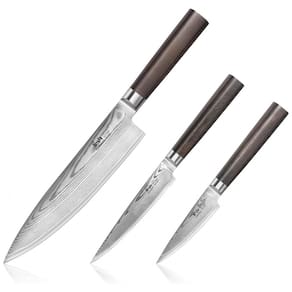 Forjado a partir de 67 camadas de X 7 Damascus Steel, propriedade da Cangshan. Cada lâmina passa pelo tratamento térmico ULTRA6 proprietário da Cangshan, garantindo que cada lâmina mantenha sua força e função. Afiada à mão em um ângulo de 16 graus com uma classificação de dureza Rockwell de 60 , 2, a série HAKU é incrivelmente afiada com excepcional retenção de borda Marca: Não Informado