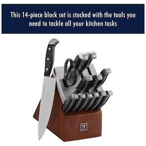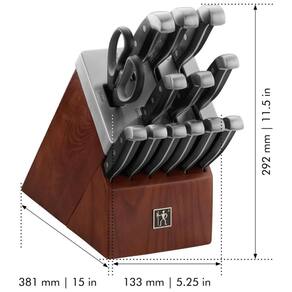 Elegante tampa em aço inoxidável escovado e bloco auto afiável com base em madeira de freixo tingida. Feito sob medida para a série de facas JA Henckels International Statement. Ranhuras auto afiáveis que se afiam cada vez que uma faca é removida ou substituída. Os slots rotulados orientam o posicionamento adequado. Facas fabricadas em aço inoxidável de alta qualidade Marca: Não Informado