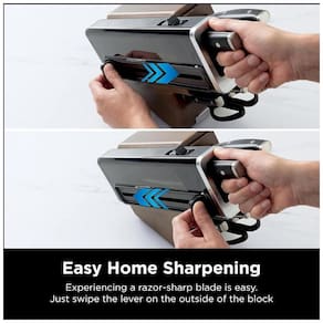 O destaque deste conjunto é o Afiador Embutido com Tecnologia NeverDull, que garante resultados de afiação profissional e mantém as lâminas afiadas como novas. O afiador é fácil de usar, com uma roda de afiação dinâmica que restaura a borda da sua faca para uma nitidez superior em segundos.