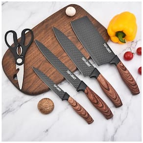 Design ergonômico Cabo confortável e durável: Os cabos apresentam um design de grão de madeira e cada faca do conjunto é reforçada totalmente forjada para proporcionar um corte robusto e equilibrado. Os cabos de madeira PP ergonômicos sólidos aumentam o conforto e minimizam a tensão no pulso, oferecendo um controle preciso sobre a lâmina. Mesmo após uso prolongado, a palma da mão e o pulso não se cansam.