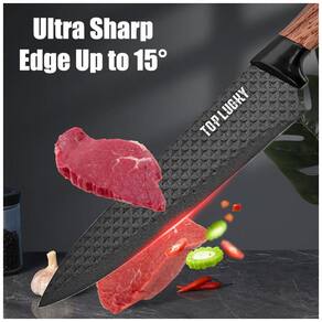 Conjunto de facas de cozinha antiaderente e à prova de ferrugem: As lâminas têm um design exclusivo com revestimento antiaderente e padrão de diamante atualizado, feitas de material 3cr13. Esse revestimento especial não apenas evita que os alimentos grudem nas facas, mas também previne a ferrugem, facilitando a limpeza Marca: Não Informado