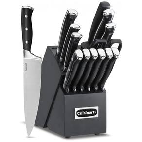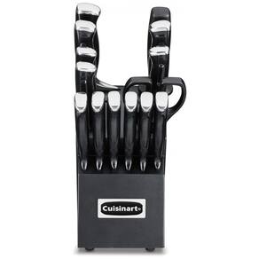 Os talheres de rebite triplo forjado clássico Cuisinart possuem lâminas superiores de aço inoxidável de alto carbono para precisão e precisão. Embaladas em um bloco de 15 peças e estoque aberto, essas facas extraordinárias têm lâminas cônicas que se estreitam gradualmente até uma borda extremamente afiada e fina. Construídas para estabilidade e controle perfeitos, as facas são projetadas com um reforço de segurança forjado extra largo e rebites de aço inoxidável que prendem a lâmina ao cabo confortável Marca: Não Informado
