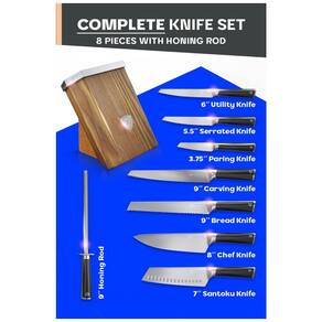 Algumas facas apenas se sentem melhor. Inspirado no estilo sem esforço e no desempenho superior dos veículos de luxo, o poder absoluto do Dalstrong Vanquish sSeries é acentuado por sua postura musculosa e linhas limpas. O conjunto de blocos da série Vanquish cobre todas as suas necessidades de cortar, fatiar, descascar e afiar com suas 7 facas versáteis e essenciais, além da haste de amolar de . Lâmina Vanquish Series ideal para cada tarefa. Forjada em aço de alto carbono e com dureza Rockwell superior a 55, esta faca foi criada para execução de alto nível. Afiada e polida com pedra, a lâmina é afiada à mão a 9 11 graus de afiação cada fatia é um exercício de excelência. Certificado pela National Sanitation Foundation NSF aplica se apenas a facas. A alça POM preta meia noite altamente impermeável à água e ao calor garante conforto e durabilidade para uma vida inteira de uso. Para um elemento adicional de sofisticação, o alfinete Dalstrong Lion Head em cada alça é um lembrete da qualidade com a qual você pode contar. Com a bainha de ajuste personalizado, você pode zená lo com segurança em seu armário ou em movimento Marca: Não Informado