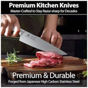 Lâminas em aço inoxidável de alto carbono importado do Japão com tratamento térmico preciso resistem à corrosão. Afiação em 15° por lado mantém funcionalidade em diferentes texturas.