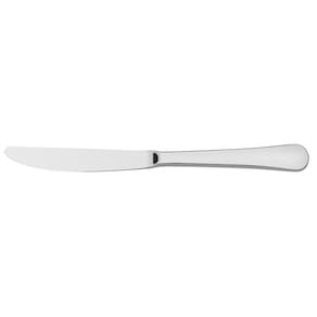 - Facas totalmente temperadas, que garante maior durabilidade no fio de corte e maior resistência à corrosão, e por sua característica de temperabilidade, não riscam as porcelanas.- Totalmente feitas de aço inox, altamente duráveis, mantêm suas características originais, preservando a beleza, a higiene e a durabilidade do material. - Acabamento em brilho. - Próprias para uso diário combinam com qualquer ambiente. - Podem ser lavadas diariamente na máquina de lavar louças. Material: aço inox. Observações Durante a lavagem, use apenas sabão ou detergente e uma esponja macia. Outros tipos de produtos, como palha de aço, poderão riscar ou prejudicar o brilho dos talheres. Enxágue bem cada peça a fim de remover totalmente os resíduos dos produtos de limpeza, pois, por serem abrasivos, podem prejudicar o inox. Sempre que possível, use água quente, pois renova o brilho do talher. Após a lavagem, enxugue imediatamente os talheres, caso contrário, as substâncias químicas da água (cloro) poderão causar manchas. Evite atrito entre os talheres durante o processo de lavagem e no armazenamento, para mantê-los sem riscos. Evite o contato das peças com superfícies quentes. Elas provocam a descoloração do produto. Não guarde os talheres em locais úmidos. A umidadetambém provoca manchas. Ao usar a lava-louça, recomendamos retirar os talheres logo que tenha terminado o ciclo ''enxaguar'', a fim de que sejam secados manualmente. Características Gerais EAN13 7891116125519 DUN14 17891116125516 NCM 8211.91.00 Peso Líquido 0,1650 kg. Peso Bruto 0,1700 kg. Metragem 0,000193 m³. Dimensões Embalagem (Compr. X Larg. X Alt.) 293x 55x 12 mm.
