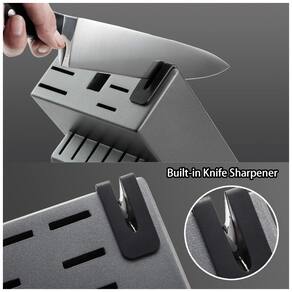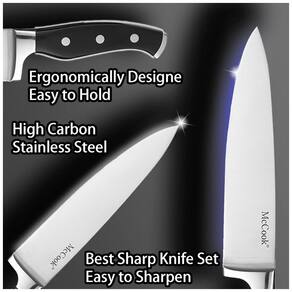 Conjunto de facas de cozinha de ALTA QUALIDADE Resistente a manchas e ferrugem, este conjunto de facas de aço inoxidável é de qualidade de conjunto de facas de restaurante. Todas as facas passaram por pelo menos 5 verificações antes de serem enviadas. CONJUNTO DE FACAS DE CLASSE MUNDIAL A exclusiva tecnologia de ponta cônica proporciona afiação ideal para um corte preciso e é fácil de reafiar. A alça de design ergonômico proporciona conforto e confiança no manuseio. FÁCIL DE ZENAR Todas as facas são zenadas com segurança no bloco de facas de madeira dura com afiador embutido para zenamento com eficiência de espaço. CUIDADO FÁCIL O conjunto de facas de cozinha com bloco é fácil de limpar. Para proteger a nitidez e o brilho das facas, limpe e seque as imediatamente após a lavagem das mãos para tirar o máximo proveito delas Marca: Não Informado