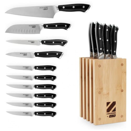 Este conjunto de blocos de facas de 11 peças Zakarian by Dash inclui todas as facas de que sua cozinha precisa, bem como um bloco de facas magnético para segurá las. AÇO ALEMÃO DE ALTA QUALIDADE As facas apresentam lâminas full tang feitas de aço alemão para maior durabilidade e corte. O aço resistente à corrosão é mais forte e mais durável do que outros materiais, resistindo a lascas e quebras e mantém a nitidez ao longo do tempo. CABO DE REBITE TRIPLO Prende com segurança a lâmina ao cabo para maior durabilidade e estabilidade. FÁCIL DE LIMPAR As ripas no Knife Block facilitam a limpeza do Knife Block. FACAS SEGURA PARA MÁQUINAS DE LAVAR LOUÇA Recomenda se lavar à mão para prolongar a vida útil das facas Marca: Não Informado