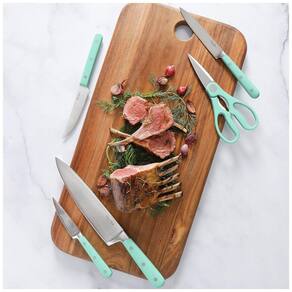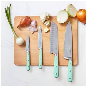 LÂMINAS DE ALTO CARBONO Facas de aço inoxidável forjado com construção full tang para equilíbrio e durabilidade. PUNHOS ERGONÔMICOS Puxadores com rebites triplos em uma bela cor preta fosca moderna. BLOCO DE FACAS RESISTENTE Bloco de facas de madeira de acácia zena facas com segurança. INSTRUÇÕES DE CUIDADOS Lavar apenas à mão. Para limpar o bloco de madeira, passe um pano macio e úmido Marca: Não Informado