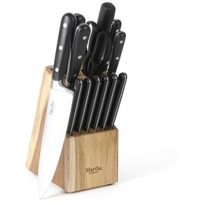 Conjunto de Facas em Aço Inoxidável com Bloco de Bancada, 14 Peças, Martha Stewart, Preto Fosco