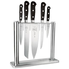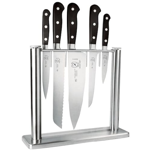 CONSTRUÇÃO DE QUALIDADE As facas são forjadas com precisão com aço de talheres alemão de alto carbono para uma nitidez incrível e duradoura. DESIGN SUPERIOR A alça ergonômica triplamente rebitada é resistente, leve e resistente ao desgaste físico excessivo, e a coluna arredondada oferece uma aderência confortável. CUIDADO FÁCIL Para maximizar o desempenho e a longevidade de suas facas Mercer, lave cuidadosamente os talheres à mão após cada uso com água morna e sabão neutro enxágue e seque completamente com uma toalha macia. Não coloque na máquina de lavar louça ou mergulhe por longos períodos de tempo. MERCER CULINARY RENAISSANCE SERIES Nossa visão de um clássico com uma combinação de ajuste, forma e função extraordinários este conjunto de facas renascentista oferece as principais facas necessárias em todas as cozinhas em uma solução de zenamento elegante, perfeita para uso intenso ou para entusiastas da culinária caseira Marca: Não Informado