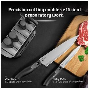 ALTA QUALIDADE Lâminas de faca de aço inoxidável de alto carbono superiores tornam o corte ainda mais fácil e as lâminas permanecem afiadas por mais tempo. O conjunto de facas profissional para cozinha é prático, afiado e preciso para cortar alimentos. Resistente à corrosão e arranhões. FÁCIL DE USAR e CUIDAR Cabo PE ergonômico para corte preciso. Alças macias e confortáveis garantem um aperto , a faca não escorrega quando sua mão fica molhada. E o conjunto de facas do chef é muito fácil de limpar. É melhor você limpar e limpar a lâmina da faca antes e depois do uso. Por favor, não use máquina de lavar louça. Isso manterá a longevidade da faca de cozinha. AMPLA UTILIZAÇÃO O conjunto de facas de chef multiuso é a combinação perfeita de design moderno e durabilidade essencial para as necessidades diárias da cozinha. O conjunto de facas de cozinha é um conjunto completo para cortar, fatiar, cortar e cortar sua carne, legumes, frutas. Melhor presente para s estudantes universitários, graduados, recém casados ou qualquer pessoa que esteja montando uma cozinha pela primeira vez Marca: Não Informado