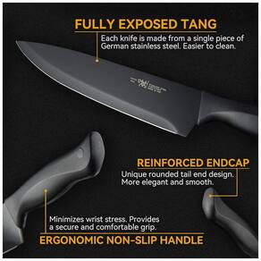 CONJUNTO DE FACAS DE COZINHA Este conjunto de facas de cozinha de alta qualidade é resistente a manchas e ferrugem e pode ser com alta frequência ou após longos períodos de inatividade para aproveitar ao máximo a vida útil das facas. CONJUNTO DE FACAS AFIADAS Cada uma das facas HUNTER.DULA é cuidadosamente ajustada para ser a mais afiada possível e usa um apontador embutido. PARA MÁQUINA DE LAVAR LOUÇA O conjunto de facas pode ser lavado na máquina de lavar louça, fácil e rápido de operar, e secar o conjunto de facas após a limpeza para facilitar o zenamento, sem ocupar espaço. ARTESANATO Antiaderente e resistente à ferrugem Com um revestimento preto que evita a oxidação do aço, o conjunto de facas de cozinha durará muito tempo e permanecerá antiaderente e resistente à ferrugem. A alça ergonomicamente projetada oferece uma pegada confortável e a alça não vai mais se soltar ou cair Marca: Não Informado
