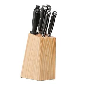 01 Faca Chef 8? 01 Faca de Cozinha 8? 01 Faca de Cozinha 5? 01 Faca para Legumes 3 1/2? 01 Chaira 8? Chaira 01 Cepo de Madeira 33x21x9 cm