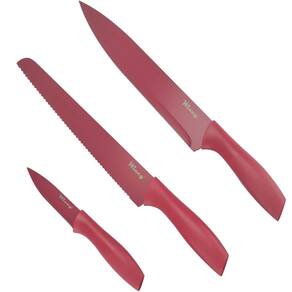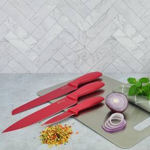 Faqueiro com as facas essenciais para a sua cozinha, confeccionadas em aço inox de alta qualidade possui cabo ergonômico que se encaixa melhor na mão dando mais firmeza na hora do manuseio, leve a alegria das cores para a sua cozinha, 4 opções azul, coral, cinza e rosa.