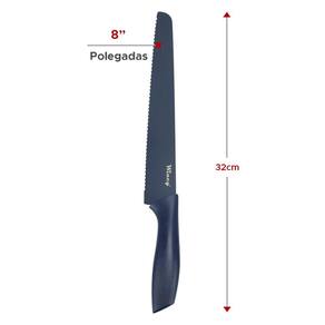 - facas de aço inox - faca do chef 8 / medida total 33 cm - faca de pão 8 / medida total 34cm - faca para legumes 3 / medida total 18,5 cm
