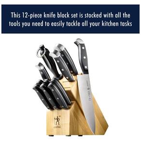 Trabalhada a partir de aço inoxidável de alto carbono para criar desempenho e valor incomparáveis conjunto de 12 peças Inclui faca de aparar de 3 polegadas, faca santoku de borda oca de 7 polegadas, faca de pão de 8 polegadas, faca de chef de 8 polegadas, seis facas de bife de 4,5 polegadas, aço de afiar de 9 polegadas e um bloco de facas de madeira dura Cabo de rebite triplo com espiga total. Para Máquina de lavar louça lavagem à mão recomendada. Tamanho 12 pc Set Cor Marrom claro. As facas de aparar JA Henckels International são perfeitamente projetadas para tarefas menores na cozinha, como descascar ou descascar legumes e frutas. O conjunto de 3 peças inclui faca de aparar de 3,5 polegadas, faca de vegetais de 3 polegadas e uma faca de descascar de 2 polegadas. Garantia vitalícia limitada do fabricante. Pode ser lavada na máquina de lavar louça Marca: Não Informado