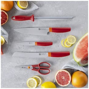 Fórmula especial ZWILLING Aço sem mancha de alto carbono A lâmina FRIODUR endurecida em gelo fica mais nítida, permanece mais nítida e tem resiliência superior O tom elegante na alça de tom faz uma declaração ousada e fresca as cores são inspiradas em ingredientes naturais a alça de polipropileno possui tratamento antiderrapante para fatiar com segurança alças ergonômicas garantem corte sem fadiga Tamanho 8 peças Cor laranja. Como especialista em cozinha moderna, a ZWILLING fabrica produtos premium que melhoram a vida de chefs profissionais e domésticos em todo o mundo. Nossa nova coleção ZWILLING NOW S apresenta uma paleta de cores elegante e tom sobre tom. Com cores fortes e frescas, as cores são inspiradas em frutas frescas Marca: Não Informado