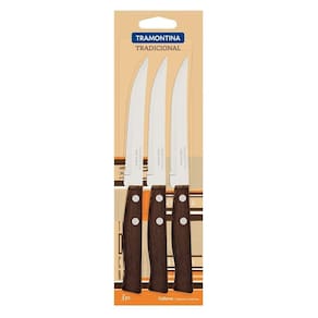 Conjunto de Facas para Churrasco e Frutas Tramontina Tradicional em Aço Inox e Cabos de Madeira Natural 3 Peças Tramontina -