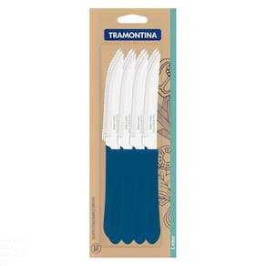 Para levar mais estilo e diversão às suas refeições, o Conjunto de Facas para Churrasco Tramontina Leme com Lâminas em Aço Inox e Cabos de Polipropileno Azul Oceano 12 Peças é a escolha perfeita. As facas que compõem o conjunto possuem lâminas produzidas em aço inox, são resistentes e proporcionam um excelente corte dos alimentos. Seus cabos são em polipropileno e garantem um manuseio muito confortável, além de levar muito mais cor à sua mesa. Elas são também muito fáceis de limpar e podem ser lavadas na máquina de lavar louças. O conjunto perfeito para fazer parte da sua rotina! Orientações As lâminas de aço inox tem maior durabilidade do fio devido ao tratamento térmico. Os cabos de polipropileno possuem maior resistência e durabilidade. Podem ir à máquina de lavar louças facilitando seu dia a dia. Características Gerais EAN13 7891112281790 DUN14 17891112281797 NCM 8211.91.00 Peso Líquido 0,2000 kg. Peso Bruto 0,2200 kg. Metragem 0,000835 m³. Dimensões Embalagem (Compr. X Larg. X Alt.) 31x 98x 275 mm. Cor 1 005F86 Hexa Observações Antes da primeira utilização, lave bem as peças e seque-as.Tenha cuidado ao manusear produtos cortantes e perfurantes e mantenha-os fora do alcance das crianças.Para maior durabilidade dos produtos recomenda-se secar bem antes de guardar, mesmo após lavagem em máquina. Para descarte dos produtos e embalagens siga as orientações de reciclagem vigentes.