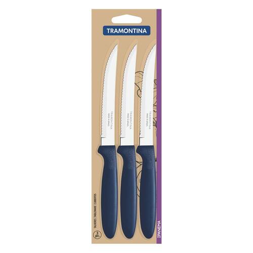 Produto: Conjunto de Facas para ChurrascoModelo: 23360315Marca: TramontinaLinha: IpanemaQuantidade de Peças: 3Itens Inclusos: 3 Facas para ChurrascoMaterial da Lâmina: Aço InoxMaterial do Cabo: Polipropileno