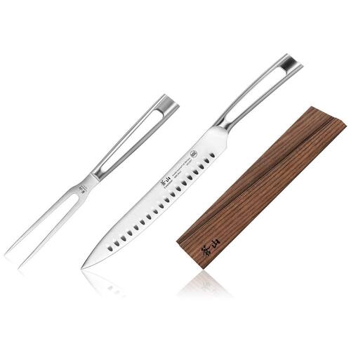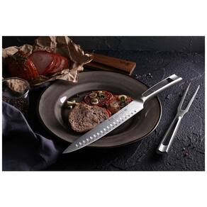 Forjadas completas em aço sueco Sandvik 14C28N de alta liga com nitidez excepcional, retêm uma borda até 5 vezes mais que o aço alemão X50Cr15MoV RedDot 2016 Award patenteado com foco no design exclusivo da estrutura metálica e cabo de acabamento mate ergonômico o conjunto de facas de 2 peças inclui faca de corte lâmina de 9 polegadas, cabo de 5,5 polegadas e garfo de corte total de 11 polegadas Cada faca é fornecida com a bainha magnética semi aberta Ashwood sólida carbonizada. Série TN1 A Série TN1 contrasta sua beleza sutil com uma lâmina afiada de ponta reta. A faca toda forjada em metal tem um acabamento fosco que fornece resistência superior para durabilidade excepcional. Um design minimalista e elegante com alça oca garante que essas facas sejam confortáveis e esteticamente agradáveis. Cada faca é bem equilibrada e perfeitamente trabalhada, permitindo o uso pesado da cozinha e a limpeza fácil. Materiais de primeira qualidade. Esta faca apresenta o aço Sandvik 14C28N sueco para um produto duradouro e duradouro. O Swedish Steel oferece uma mistura de incrível dureza e durabilidade, com a capacidade de atingir uma classificação de dureza de 59 , 2 na escala de classificação de dureza Rockwell. Esses aços mantêm sua aresta afiada até 5 vezes mais que a German Steel. Isso significa uma faca que fica mais afiada e mais longa. Fabricação superior. Cada lâmina passa por um processo de tratamento térmico de precisão de 6 estágios, que leva a granulação fina do material a uma estrutura interna mais estável Marca: Não Informado