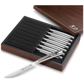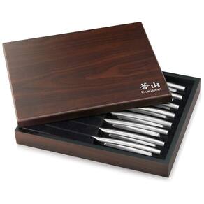 O projeto patenteado RedDot 2016 Award Winner concentra se na estrutura toda metálica e no acabamento ergonômico fosco Facas completas forjadas a partir de aço Sandvik 14C28N sueco de grão fino para durabilidade incrível, resistência a manchas e retenção excepcional de arestas Design de faca patenteado que se concentra em equilíbrio notável e uma alça ergonômica que proporciona uma aderência confortável e segura O meticuloso processo de tratamento térmico ULTRA6 de seis estágios aumenta a dureza e a força para permitir a máxima nitidez inicial da ponta afiada à mão em 16 graus no estilo asiático. Série TN1 A Série TN1 contrasta sua beleza sutil com uma lâmina afiada de ponta reta. A faca toda forjada em metal tem um acabamento fosco que fornece resistência superior para durabilidade excepcional. Um design minimalista e elegante com alça oca garante que essas facas sejam confortáveis e esteticamente agradáveis. Cada faca é bem equilibrada e perfeitamente trabalhada, permitindo o uso pesado da cozinha e a limpeza fácil. Materiais de primeira qualidade. Esta faca apresenta o aço Sandvik 14C28N sueco para um produto duradouro e duradouro. O Swedish Steel oferece uma mistura de incrível dureza e durabilidade, com a capacidade de atingir uma classificação de dureza de 59 , 2 na escala de classificação de dureza Rockwell Marca: Não Informado