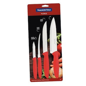 Informações Adicionais: O Jogo de Facas Tramontina Plenus com Lâminas em Aço Inox e Cabos de Polipropileno Vermelho 4 Peças da Linha Plenus é perfeito para diferentes cortes na cozinha. As quatro peças atendem diferentes usos: desde o preparo dos alimentos ao serviço de mesa. Produzidas com cabos de polipropileno e lâminas em aço inox, são resistentes e fáceis de manusear, podendo ser utilizadas na lava louças. O design moderno permite que elas estejam em preparações que vão desde o café da manhã ao jantar. A escolha certa para suas necessidades na cozinha.