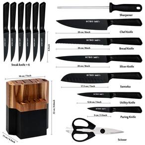 Revestimento antiferrugem de alta qualidade e fácil de limpar Você ainda está usando facas comuns Multifuncional Design de mistura perfeito, adequado para aplicações profissionais, com funções para vários fins, pode cortar, fatiar, triturar todos os tipos de carne, legumes, frutas e pão. Adequado para uso doméstico e restaurante. Lâminas de aço inoxidável de alto carbono Graças à nossa tecnologia autônoma de fabricação de aço desenvolvimento para facas, torna mais fácil ficar afiado. Você pode fazer tudo por um longo tempo, desde fatiar, picar, cortar em cubos, tudo sem esforço. Ângulos de lâmina de 15 permitiram cortes finos como papel que eram consistentes do início ao fim, mesmo em um tomate escorregadio Marca: Não Informado