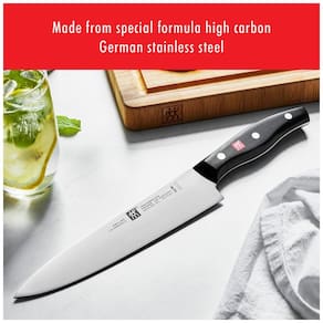 As facas Twin Signature da ZWILLING são produzidas com precisão a partir de uma única peça de aço alemão, resultando em facas mais leves que não comprometem a afiação. Feitas de aço especial patenteado, aperfeiçoado ao longo de 280 anos, essas lâminas FRIODUR, combinadas com a técnica de endurecimento por gelo da ZWILLING, são mais duras, mais afiadas, não mancham, não lascam e mantêm a afiação por mais tempo. As alças com três rebites embutidos com o logo da ZWILLING J.A. Henckels oferecem durabilidade máxima. As facas ZWILLING ultra afiadas começam cortantes e permanecem afiadas por mais tempo. Com 57 Rockwell Hardness, excelente retenção de borda e ângulo de 15 graus por lado, este conjunto é ideal para qualquer cozinha. Construídas para durar, as facas ZWILLING são o resultado de quase 300 anos de experiência em fabricação de facas. Ergonomicamente projetadas para conforto máximo, estas facas equilibram força e precisão. O conjunto inclui: Faca de Desossa de 4 polegadas, Faca Utilitária Serrilhada de 5 polegadas, Faca do Chef de 8 polegadas, Tesoura de Cozinha, Aço de Afiar de 9 polegadas e Bloco de Madeira com 10 Slots.