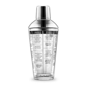 - 7 receitas populares de coquetéis impressas diretamente na coqueteleira.