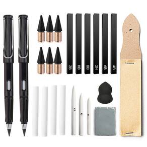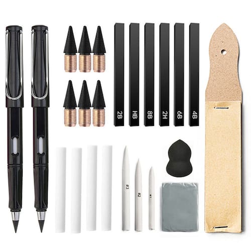 Material: madeira e plástico Tamanho: 22 cm × 10 cm × 2 cm Peso: 150 g Kit de desenho completo: este conjunto de ferramentas de desenho de 24 peças inclui lápis de grafite de alta qualidade, tocos de mistura, bastões de carvão, borracha amassada e ferramentas de afiação, perfeitas para esboçar e sombrear. Versátil para todos os níveis de habilidade: seja você um artista iniciante ou profissional, esse conjunto fornece as ferramentas essenciais necessárias para criar obras de arte detalhadas e vibrantes. Ferramentas de alta qualidade para precisão: os lápis de grafite incluídos (2B, HB, 4B, 6B, 8B) oferecem excelente qualidade, permitindo linhas suaves e consistentes e técnicas de sombreamento versáteis. Ideal para sombrear e misturar: os tocos de mistura e a borracha amassada permitem criar transições suaves, realces e detalhes finos, tornando-o ideal para retratos e esboços de natureza morta. Portátil e organizado: o conjunto vem com uma embalagem organizada, facilitando o armazenamento e o transporte de suas ferramentas de desenho para aulas, estúdios ou projetos em qualquer lugar.