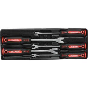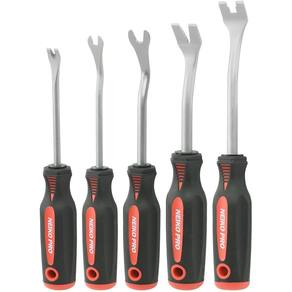 Neiko Conjunto de ferramentas de remoção de painel de acabamento automático 20596B com aderência macia (5 peças) - Kit de remoção de acabamento automático: nosso kit de ferramentas automáticas torna a remoção de clipes e fixadores fácil, segura e rápida. Os eixos têm pontos de articulação para alavancagem apropriada para ajudar a evitar torções que podem arranhar um painel de porta ou peça de acabamento. - Ferramentas de carro duráveis: este kit de ferramentas automotivas inclui 5 ferramentas de alta qualidade. Os eixos são projetados com aço cromado acetinado SVCM para máxima durabilidade, para que possam durar por muitos projetos de reparo de veículos por muitos anos. - Conjunto de painéis de acabamento versátil: perfeito para uso na maioria dos veículos, nossas ferramentas automotivas ajudam a remover clipes e fixadores que prendem estofados, painéis e muito mais. Os eixos também são adequados para trabalho interior, incluindo em um painel, estéreo ou rádio. - Aderência confortável: cada eixo é equipado com uma alça ergonômica com um revestimento macio para manter suas mãos confortáveis durante projetos longos. Estes acessórios ultraconfortáveis são o complemento perfeito para qualquer kit de ferramentas de carro. - O tamanho certo: este conjunto de ferramentas de corpo automático de 5 peças inclui tamanhos diferentes para atender às suas necessidades de fixação. Inclui 1 ponta quadrada, 1 ponta grande em "V", 1 ponta pequena em "V", uma ponta de entalhe em "U" de 1/10.2 cm e uma ponta de entalhe em "U" de 5/40.6 cm.