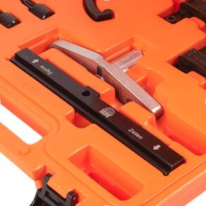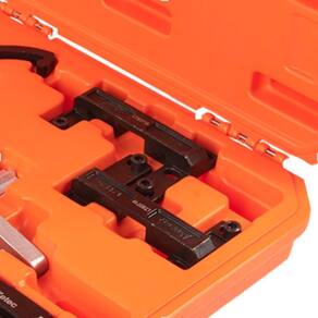Itens que compõem: 01 Ferramenta para posicionar em sincronismo as polias com variador de fase do motor: cod. 121124 01 Conjunto com três ferramentas para posicionar em sincronismo os motores: cod. 121125 01 Conjunto de ferramentas para sincronismo do motor: cod. 121126 01 Ferramenta reforçada para travar o volante do motor: cod. 101013