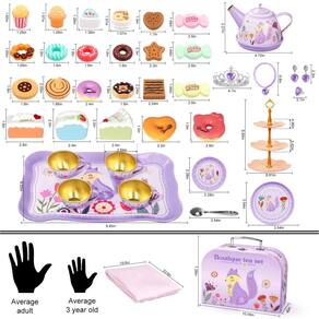 Design clássico de bolinhas que nunca sai de moda! O tamanho das xícaras de chá e lanches é ótimo para as mãos pequenas das crianças. Suas filhas podem convidar amigos, imitar os pais para tomar chá no pátio, aprender o processo de fazer chá, aumentar suas habilidades sociais e de comunicação, satisfazer sua imaginação. ?Conjunto de bules de estanho que inclui? 1 bule de chá, 1 bandeja de servir; 4 xícaras de chá, 4 porta-copos, 4 pratos, 4 colheres; 23 sobremesas, 1 suporte de bolo de 3 camadas; 1 coroa, 1 colar, 1 pulseira, 1 anel, 1 par de brincos; 1 toalha de mesa (23,6 polegadas* 23,6 polegadas) * 1 raposa estojo de papelão (10,04 polegadas x 4,05 polegadas x 7,28 polegadas) O conjunto de chá inteiro vem embalado em uma maleta de transporte correspondente — perfeita para arrumar ou então o conjunto de chá pode ser embalado para visitar amigos, avós ou até mesmo nas férias. O conjunto Tea Party é um ótimo brinquedo de RPG para crianças, desenvolve sua coordenação olho-mão, linguagem, habilidades motoras finas e melhora suas habilidades de comunicação, inspira criatividade. Junte-se a nós. Vamos ser criativos e nos divertir! - 🍰?CONJUNTO PERFEITO PARA FESTAS DE CHÁ PARA MÃOZINHAS?Este adorável conjunto de chá infantil foi projetado para fingir que está brincando, inclui 1 bule, 1 bandeja de servir, 4 xícaras, 4 colheres, 4 pratos, 1 coroa, 1 colar, 1 pulseira, 1 anel, 1 par de brincos, 1 suporte de bolo de 3 camadas, 1 toalha de mesa, 1 estojo de papelão, 23 peças de plástico ABS que fingem jogar sobremesa com uma variedade de donuts, macaron, molhos para salada, pipoca, etc. - 🦊?SAFETY TEA PLAYSET?Este conjunto de chá para meninas é feito de material de estanho premium, não tóxico e resistente ao calor, com boca lisa para fins de proteção ao brincar; acessórios para sobremesas, que fornecem material plástico inofensivo, têm resistência e uso duradouros; a maleta de transporte para raposas com alça de liga leve para facilitar o transporte, que as crianças podem levar para acampar ou outras atividades ao ar livre. - 💞?APRENDENDO BRINCANDO?Os conjuntos de chá para crianças pequenas podem estimular a imaginação, a criatividade e a coordenação olho-mão de seu filho. As sobremesas fofas e o brinquedo de chá suficientes e variados farão com que as crianças se apaixonem pela dramatização e permitam que várias crianças brinquem, desenvolvam seu hábito de compartilhar e se divirtam. Perfeito para crianças de 3 a 8 anos, este brinquedo para a hora do chá incentiva brincadeiras de fingir e habilidades de socialização enquanto se divertem. - 👑?PRINCESS PRETEND PLAY TEA TIME?As meninas adoram brincar de cenas fingidas e realistas que podem criar uma verdadeira hora de festa de chá para as crianças se divertirem. Pronto para passar a hora do chá feliz com amigos e familiares, sobremesas, bebidas e conversar! Vista-se, coloque a coroa, o colar, estenda a toalha de mesa, encha a barraca de sobremesas e a bandeja com deliciosas sobremesas, coloque as bebidas na xícara e comece a hora do chá! - 🎁?PRESENTES PARA MENINAS?Quando você navega na página “Presentes para meninas”, acredito que os presentes cheios de sinos dificultarão sua escolha. Estes brinquedos para meninas de 3 a 8 anos são um bom presente ideal para festas de aniversário, festivais e feriados (Dia dos Namorados, Dia das Crianças, Natal, Halloween, Ação de Graças e Ano Novo). Fazer uma festa de chá oferece às crianças outra opção envolvente para se divertir sem tela.