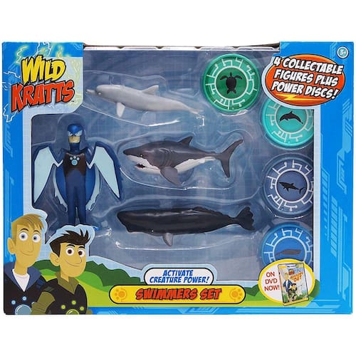 Wild Kratts - Activate Creature Power 4-Pack Action Figure Set - Swimmer --Act out some of your favorite Wild Kratts adventures, coletando estes incríveis Wild Kratts 4-Packs. O pacote inclui uma figura de ação irmão Creature Power Kratts de 3", três figuras de ação animal de 4-6'' e quatro discos de poder de criatura colecionáveis de 1''! As figuras de ação dos Kratts selvagens são esculpidas para se parecerem exatamente com o irmão Kratts e seus amigos criaturas. Que poder de criatura você vai ativar? Inclui 3" Kratt Brother em Creature Power Suit, 3 figuras animais de ação e 4 discos de energia colecionáveis!