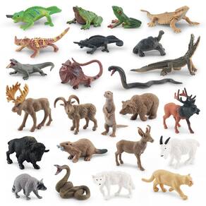 Conjunto de 24 peças de bonecos de animais selvagens, estatuetas de animais realistas de PVC, incluindo pantera, guaxinim, cobra, alce, crocodilo, sapo e muito mais, brinquedos educacionais de vida selvagem para crianças de 3 anos ou mais Descrição: Material: PVC Tamanho: 1,3 a 8,2 cm Peso: 161 g Características: diversas estatuetas de animais: este conjunto de 24 peças apresenta figuras detalhadas de animais selvagens, incluindo panteras, guaxinins, cobras, alces, sapos e mais, ideal para despertar o interesse das crianças pela vida selvagem. Materiais seguros e duráveis: feitas de PVC não tóxico e de alta qualidade, essas estatuetas são projetadas para brincadeiras seguras e duráveis, perfeitas para crianças de 3 anos ou mais. Educacionais e divertidos: esses números oferecem uma ótima maneira para as crianças aprenderem sobre diferentes espécies selvagens, aprimorando sua compreensão da natureza e incentivando brincadeiras criativas. Versátil para brincar e decorar: perfeito para brincadeiras criativas, exibições educacionais, dioramas ou como decoração para festas temáticas e quartos infantis. Ótimo para entusiastas de animais: um conjunto perfeito para jovens entusiastas da vida selvagem, oferecendo horas de diversão e aprendizado sobre animais de vários habitats. O que vem na caixa: 24 x Conjunto de figuras de animais selvagens