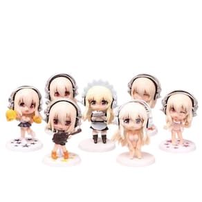 Material: PVC Cor: multicolorido Tamanho do pacote: 18 x 18 x 9 cm Peso da embalagem: 0,422 kg Lista de embalagem: 7 bonecos de anime Soniko Este conjunto de 7 peças de bonecos Soniko da versão Q apresenta personagens fofos e detalhados em várias poses, cada um usando fones de ouvido e pronto para iluminar seu espaço com seu charme e vibração. ', 'Feitas de material de PVC durável, essas figuras têm entre 7 e 9 cm de altura e são perfeitas para colecionadores, fãs de anime ou aqueles que desejam adicionar um toque único à sua mesa ou prateleira. ', 'Essas figuras adoráveis não são apenas para exibição; elas são fantásticas coberturas de bolo ou decorações de festa para eventos temáticos de anime, aniversários ou encontros de cosplay. ', 'Cada figura tem sua própria pose distinta, desde segurar um violão até tocar uma piscadela divertida, o que a torna um ótimo complemento para qualquer coleção ou conjunto de presentes para amantes de anime. ', 'O design colorido e os detalhes intrincados de cada figura, incluindo as expressões divertidas e os acessórios, fazem deste conjunto um presente delicioso para fãs de anime masculinos e femininos']