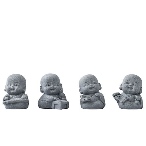 Material: Tamanho da pedra: 3,5 x 3,5 x 4,2 cm Tema cultural chinês elegante — Cada figura retrata um pequeno monge pacífico envolvido em uma das Quatro Artes (Qin, Xadrez, Caligrafia, Pintura), simbolizando sabedoria, criatividade e serenidade. Textura natural semelhante a uma pedra — Feitas de pedra sintética durável, essas estátuas replicam a elegância áspera do arenito com tons suaves de cinza para um toque artístico refinado. Tamanho decorativo compacto — Cada escultura mede 3,5 × 3,5 × 4,2 cm, ideal para bandejas de chá, mesas, prateleiras, configurações de bonsai ou pequenos arranjos de jardins zen. Decoração espiritual versátil — perfeita como ornamento simbólico para espaços de meditação, salas de estudo ou interiores culturais onde a atenção plena e a calma são valorizadas. Artesanato detalhado — Expressões faciais finas e gestos com as mãos capturam poses tranquilas de monge em ambientes divertidos e significativos, aprimorando a cena com expressão artística poética.